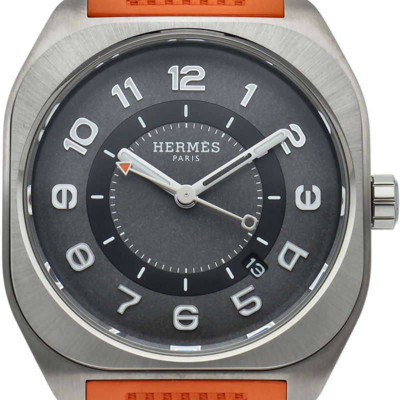 0と8の数字をモチーフにしたエルメスらしいデザイン性の高さを感じる2021年の新作、「H08(エイチ・オー・エイト)」シリーズです。搭載された「Cal.H1837」は、パルミジャーニフルリエのムーブメント部門として知られるヴォーシェ・マニュファクチュール・フルリエの「Cal.3002」をベースとしてエルメス専用に製造されたもので、時計ファンにも納得していただける1本です。SP1.741。
