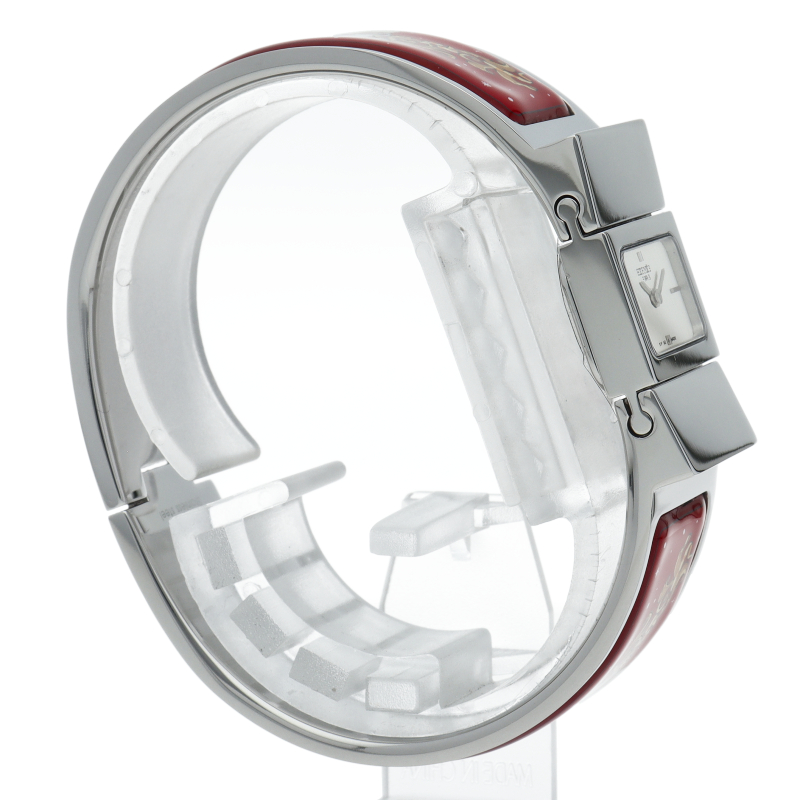時計としてはもちろん、いつもの服装にアクセントとして、アクセサリー感覚でもご使用頂けます。ケース本体を少し左にスライドするだけで付け外し可能な商品なので、使い勝手がよい商品です。