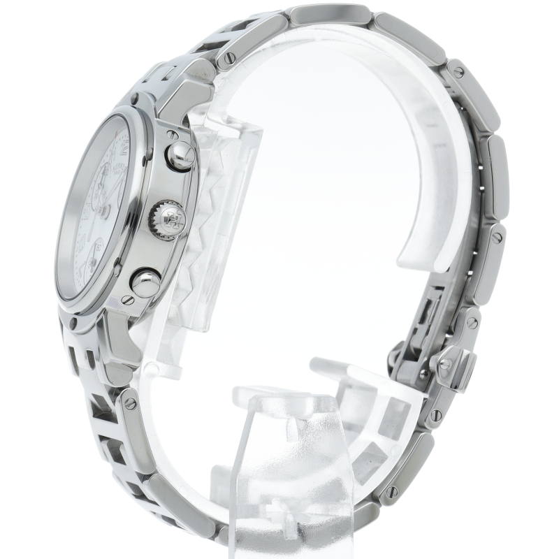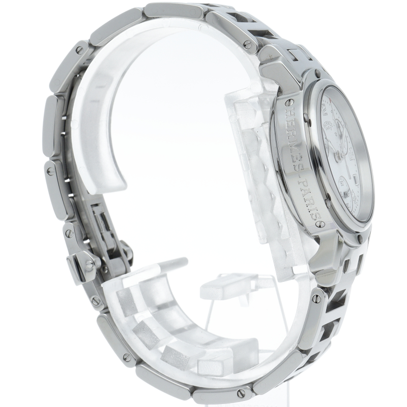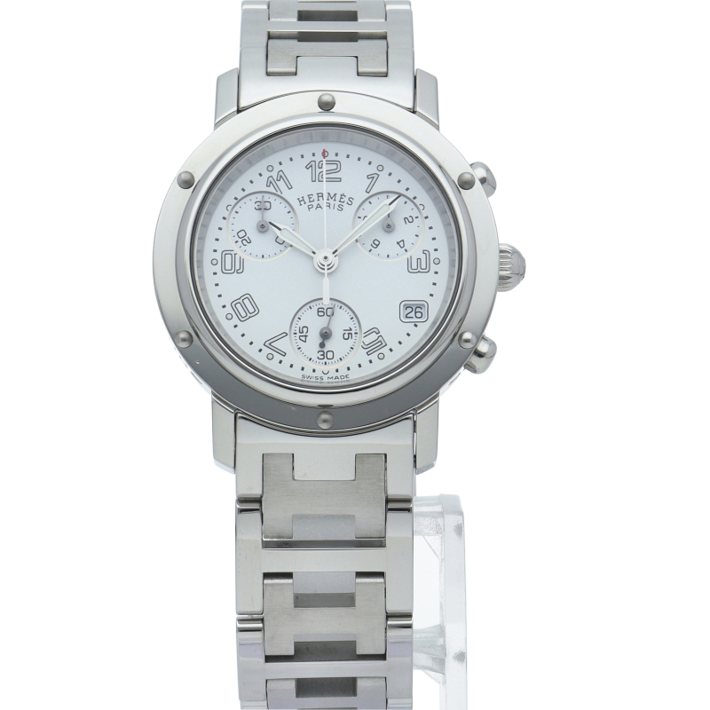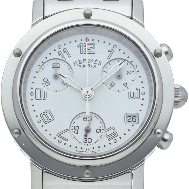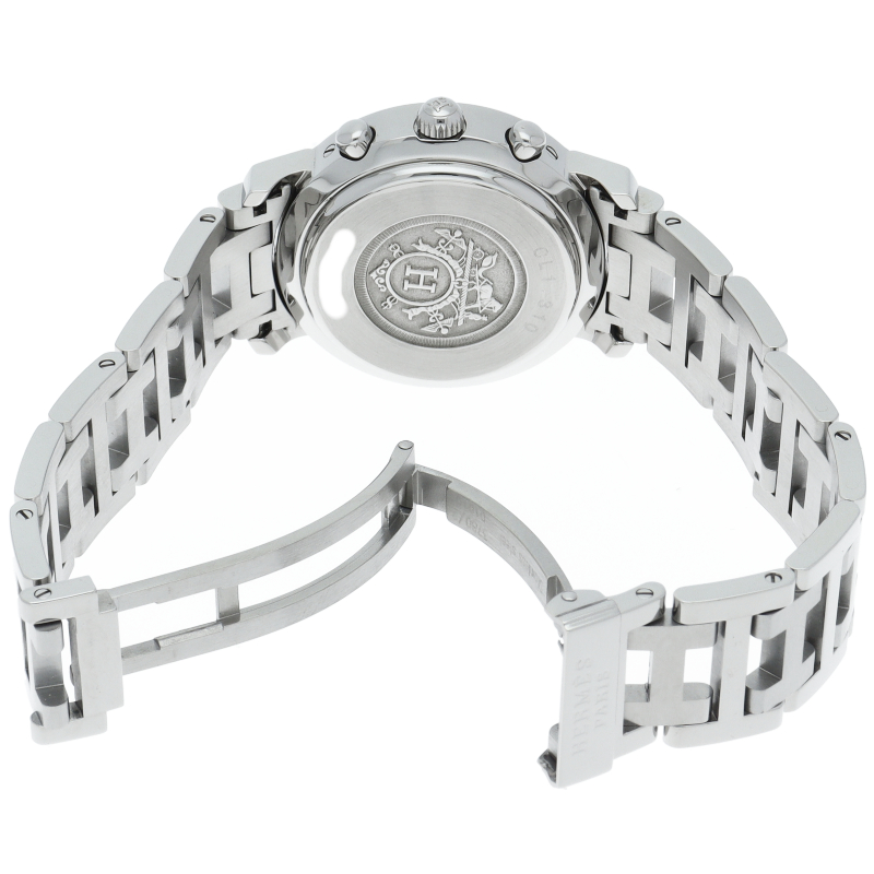 エルメスの時計シリーズの中でも非常にポピュラーな「クリッパー」。「H」ロゴを特徴としたブレスに上品で落ち着いたデザインが大人の雰囲気を演出します。クロノグラフ機能付。