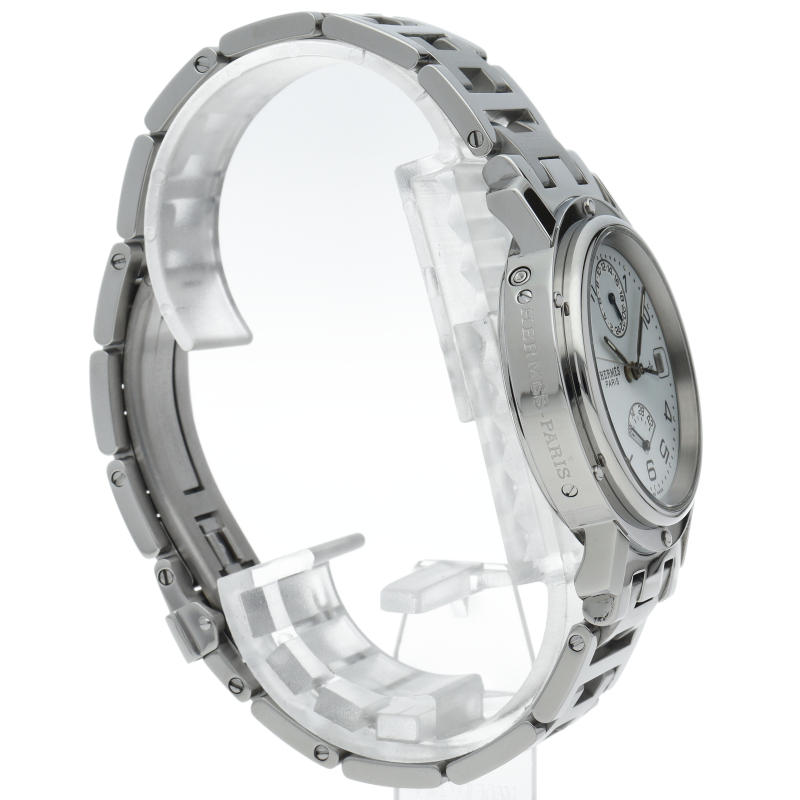 エルメスの時計シリーズの中でも非常にポピュラーな「クリッパー」。「H」ロゴを特徴としたブレスに上品で落ち着いたデザインが大人の雰囲気を演出します。