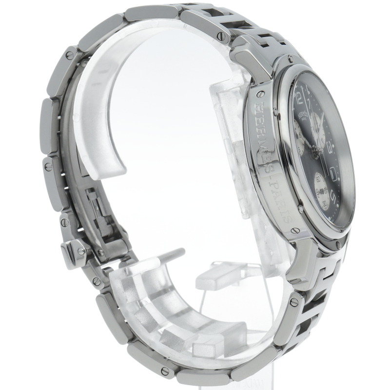 エルメスの時計シリーズの中でも非常にポピュラーな「クリッパー」。「H」ロゴを特徴としたブレスに上品で落ち着いたデザインが大人の雰囲気を演出します。