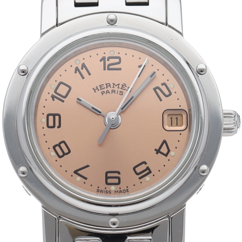 エルメスの時計シリーズの中でも非常にポピュラーな「クリッパー」。「H」ロゴを特徴としたブレスに上品で落ち着いたデザインが大人の雰囲気を演出します。