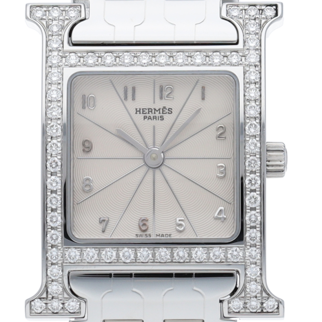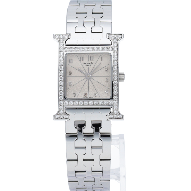 一目でエルメスとわかる「H」のアルファベットをケースにあしらったデザインです。ベゼルの「H」部分にダイヤモンドを使い、高級感漂う一品となっています。