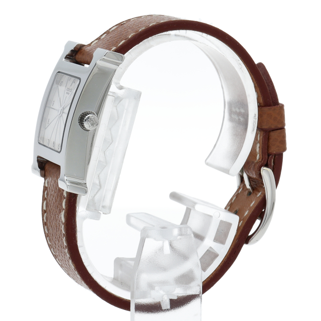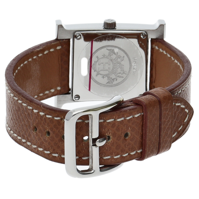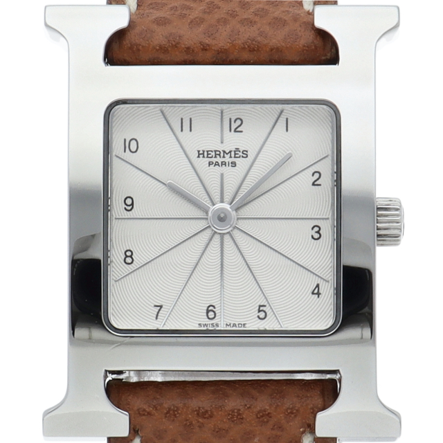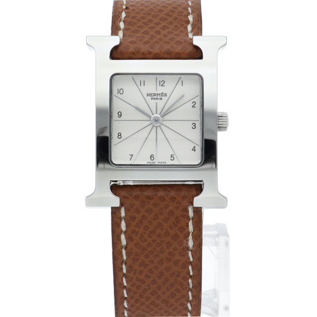 エルメスの人気モデル「Hウォッチ」。エルメスの頭文字である「H」をモチーフに作られたシンプルでオーソドックスな1本。□A刻印。