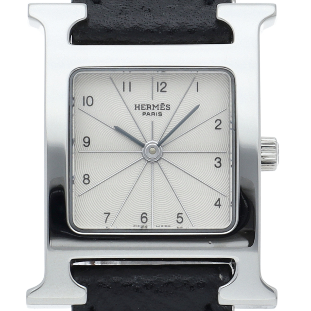 エルメスの人気モデル「Hウォッチ」。エルメスの頭文字である「H」をモチーフに作られたシンプルでオーソドックスな1本。□K刻印。