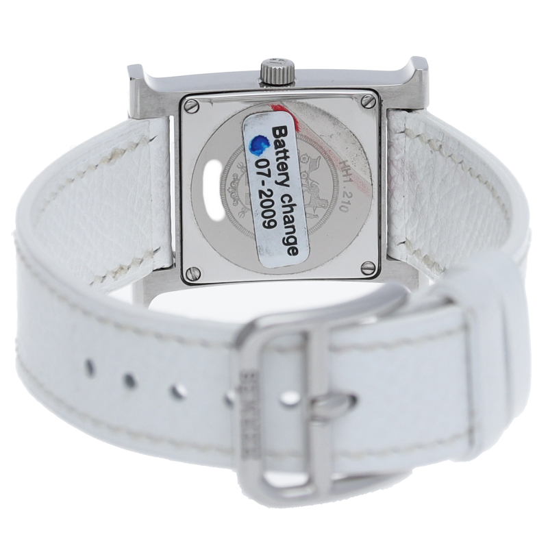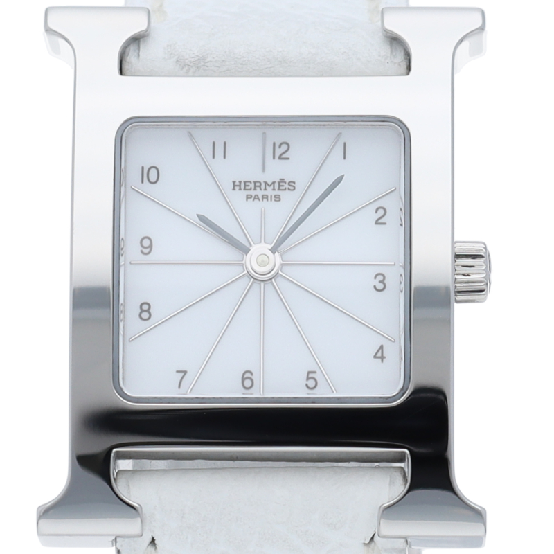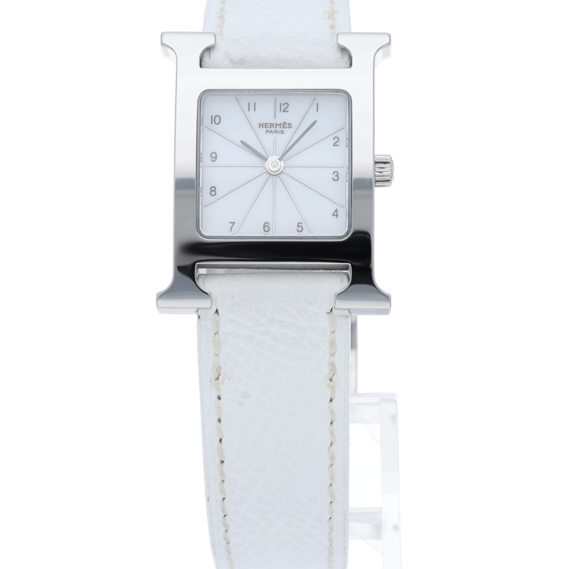 エルメスの人気モデル「Hウォッチ」。エルメスの頭文字である「H」をモチーフに作られたシンプルでオーソドックスな1本。□J刻印。