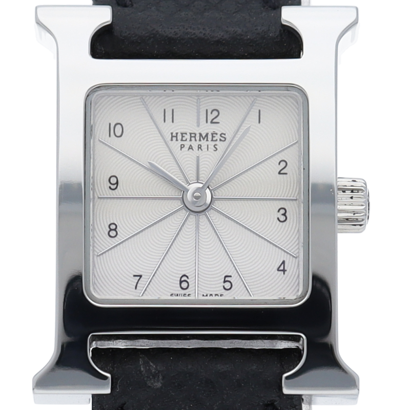 エルメスの人気モデル「Hウォッチ」。エルメスの頭文字である「H」をモチーフに作られたシンプルでオーソドックスな1本。□L刻印。