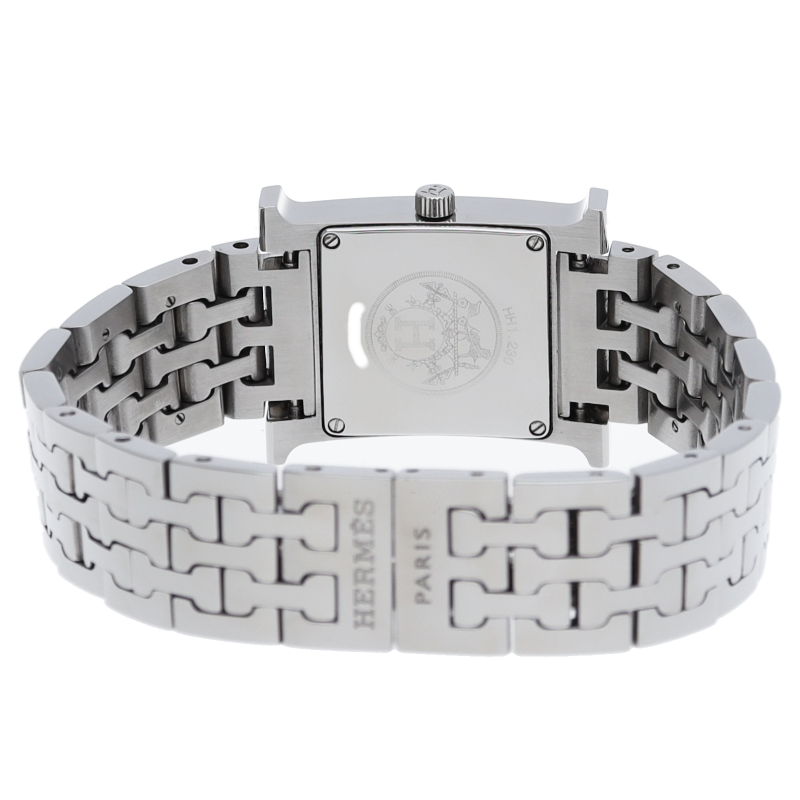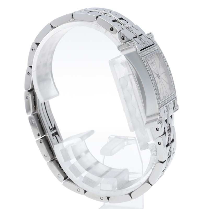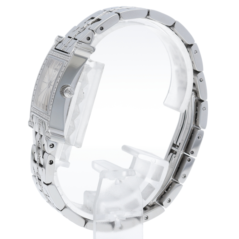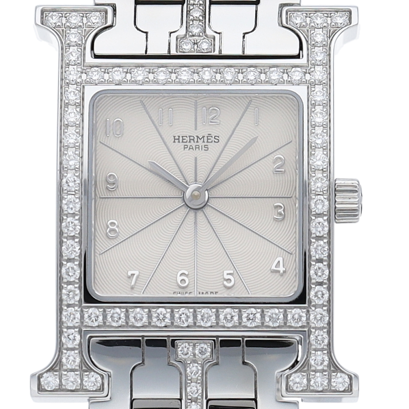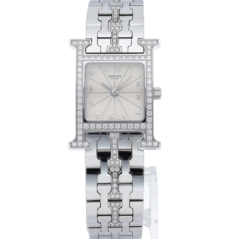 一目でエルメスとわかる「H」のアルファベットをケースにあしらったデザインです。ベゼルの「H」部分にダイヤモンドを使い、高級感漂う一品となっています。
