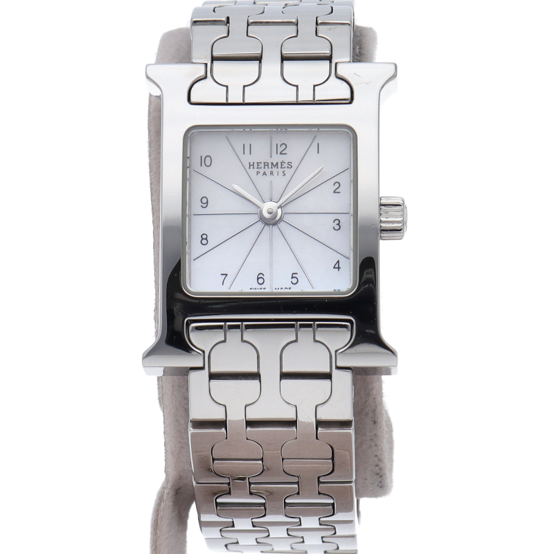 エルメスの人気モデル「Hウォッチ」。エルメスの頭文字である「H」をモチーフに作られたシンプルでオーソドックスな1本。