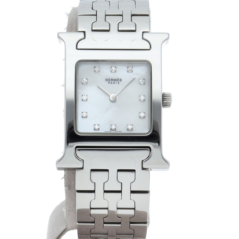 エルメスの人気モデル「Hウォッチ」。エルメスの頭文字である「H」をモチーフに作られたシンプルでオーソドックスな1本。