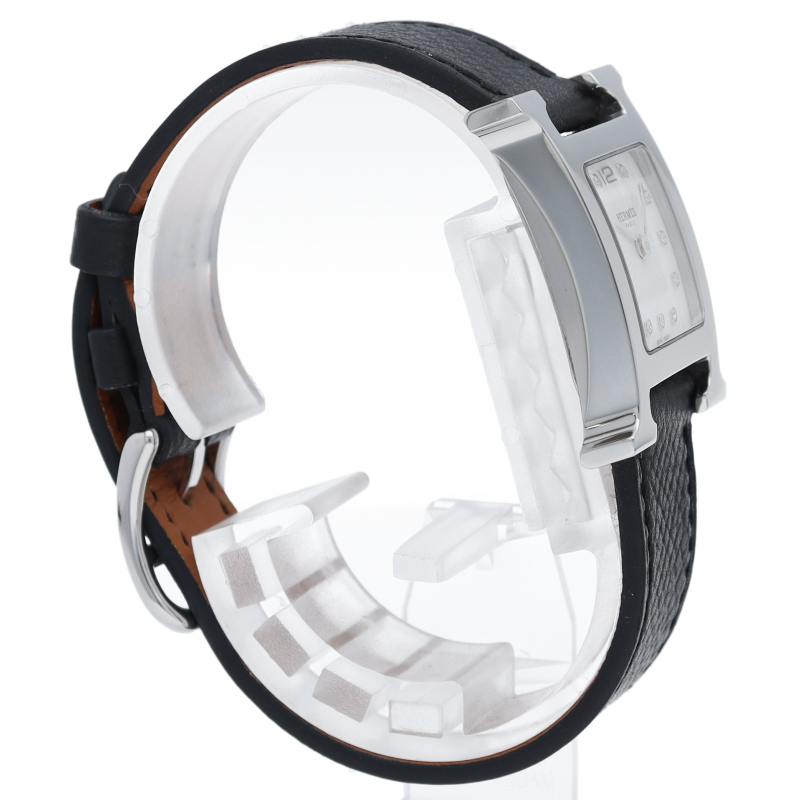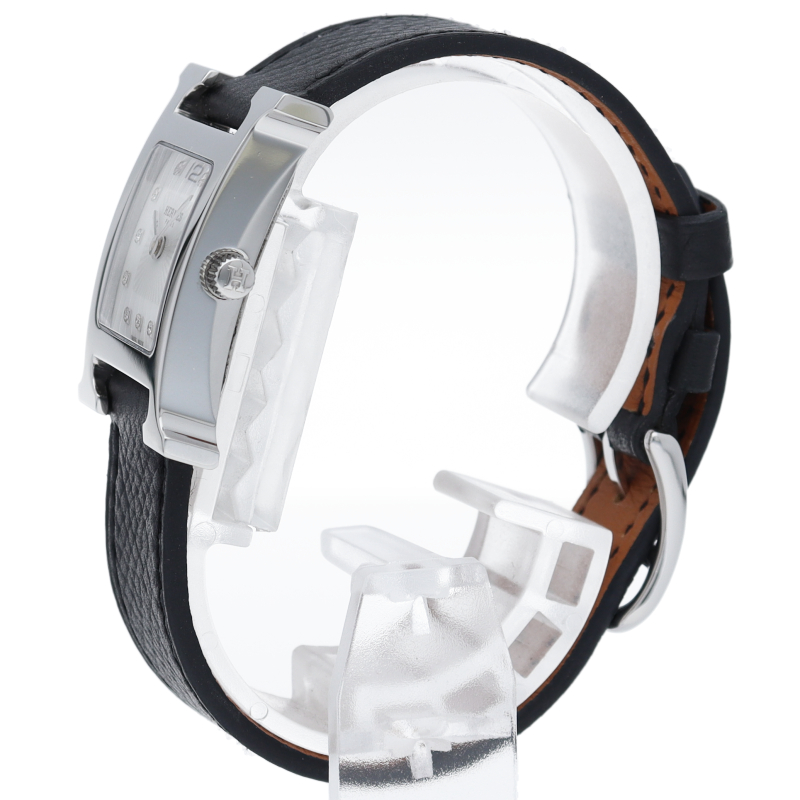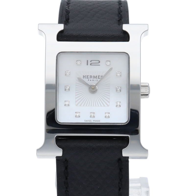 エルメスの人気モデル「Hウォッチ」。エルメスの頭文字である「H」をモチーフに作られたシンプルでオーソドックスな1本。文字盤はホワイトシェルが使われ、12ポイントダイヤモンドと共に上品さを表しています。