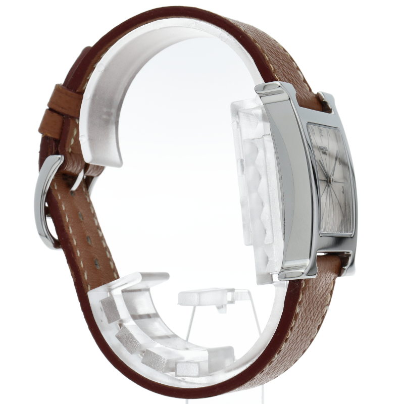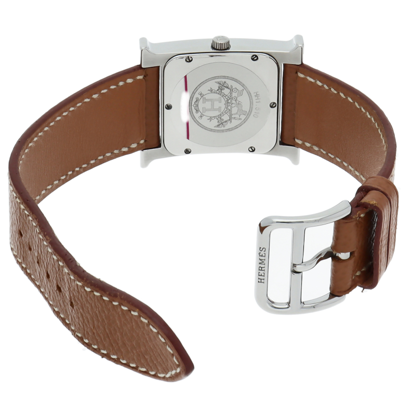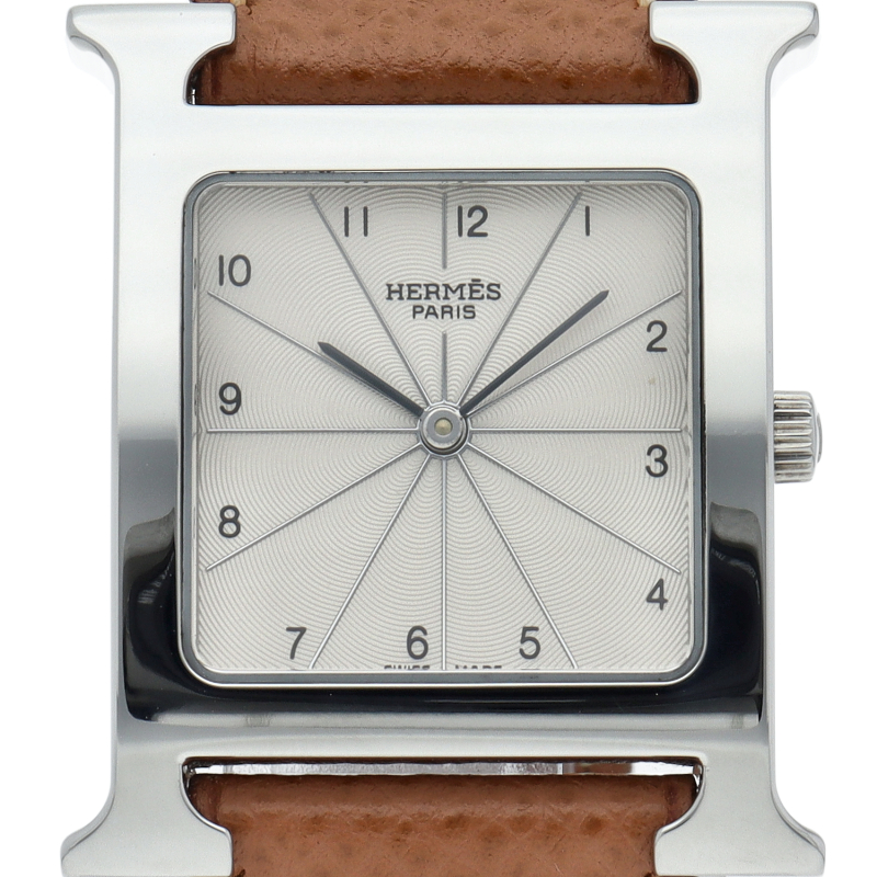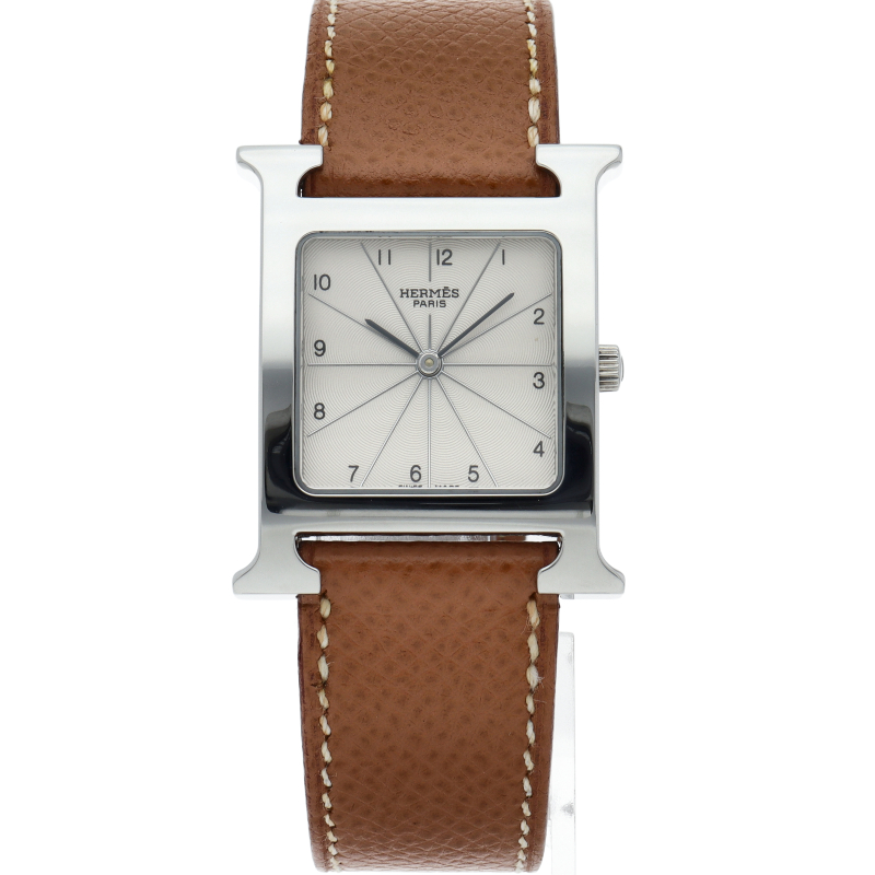 エルメスの人気モデル「Hウォッチ」。エルメスの頭文字である「H」をモチーフに作られたシンプルでオーソドックスな1本。□D刻印。