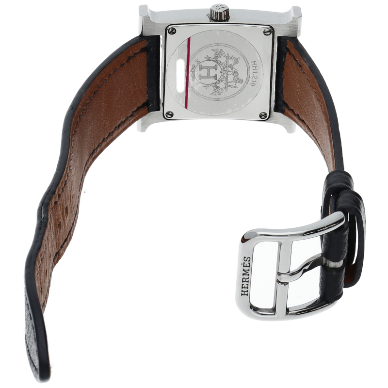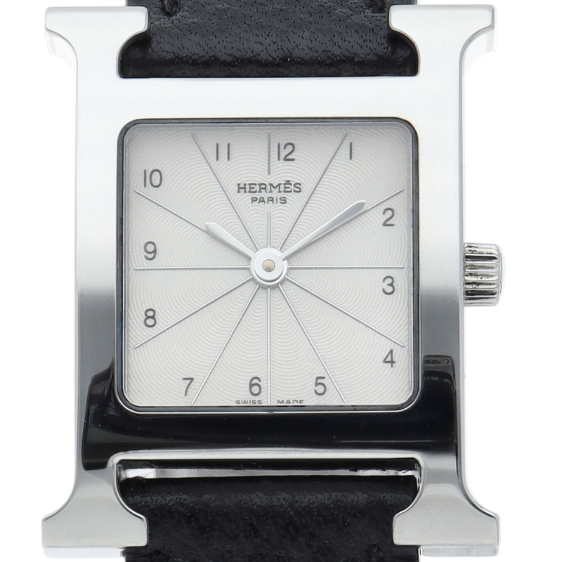 エルメスの人気モデル「Hウォッチ」。エルメスの頭文字である「H」をモチーフに作られたシンプルでオーソドックスな1本。□P刻印。
