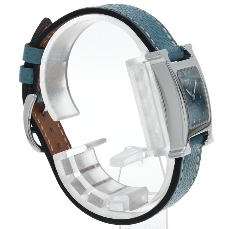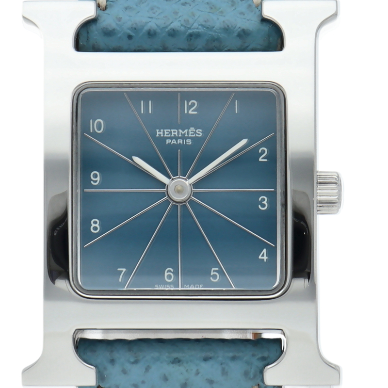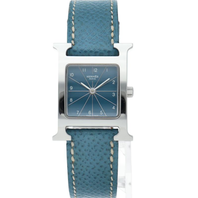 エルメスの人気モデル「Hウォッチ」。エルメスの頭文字である「H」をモチーフに作られたシンプルでオーソドックスな1本。□H刻印。