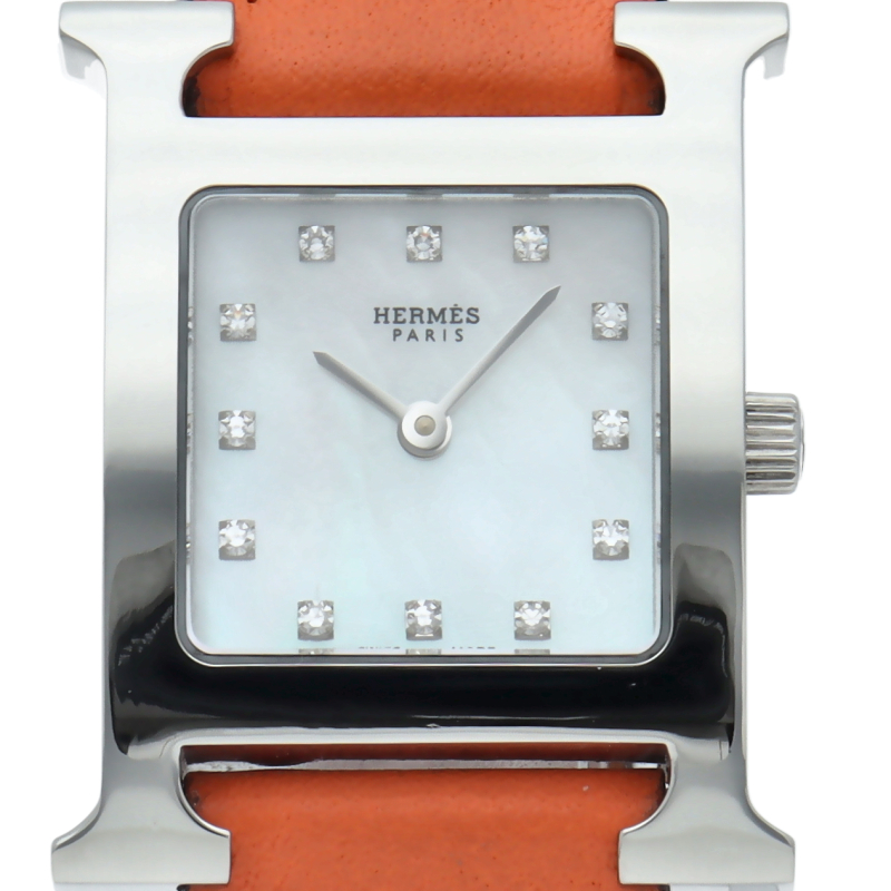 エルメスの人気モデル「Hウォッチ」。エルメスの頭文字である「H」をモチーフに作られたシンプルでオーソドックスな1本。