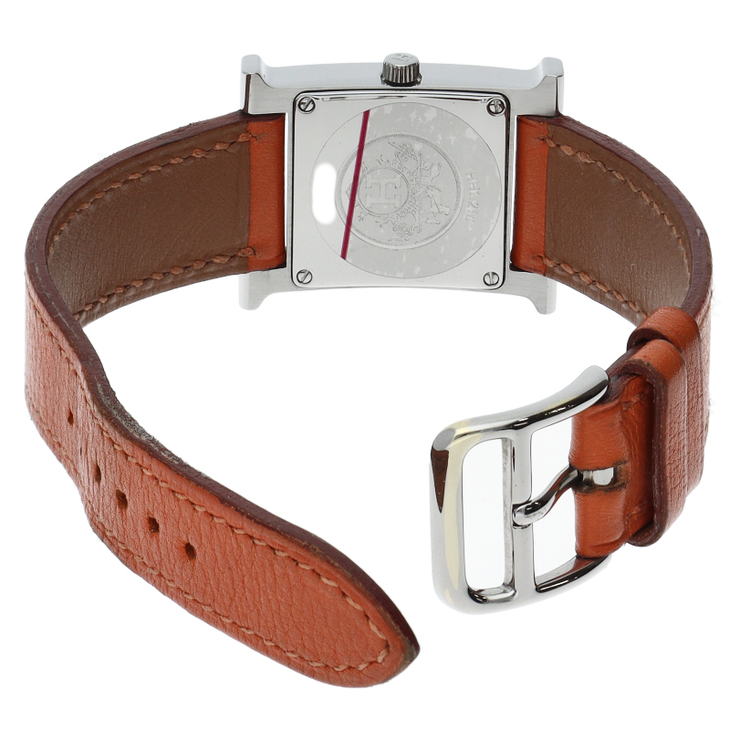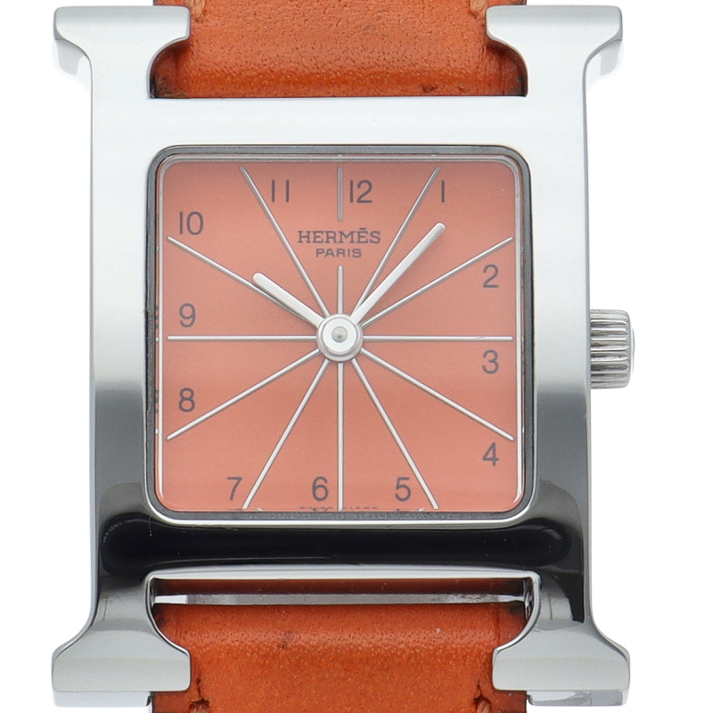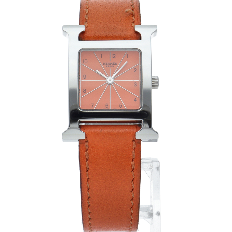 エルメスの人気モデル「Hウォッチ」。エルメスの頭文字である「H」をモチーフに作られたシンプルでオーソドックスな1本。□A刻印。