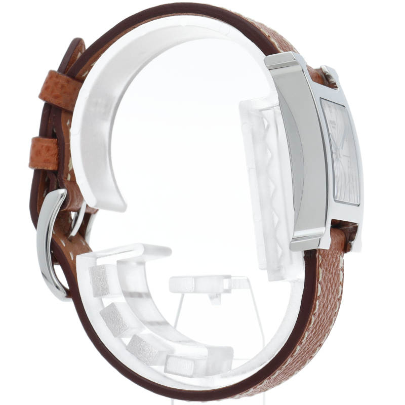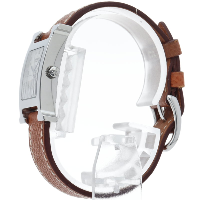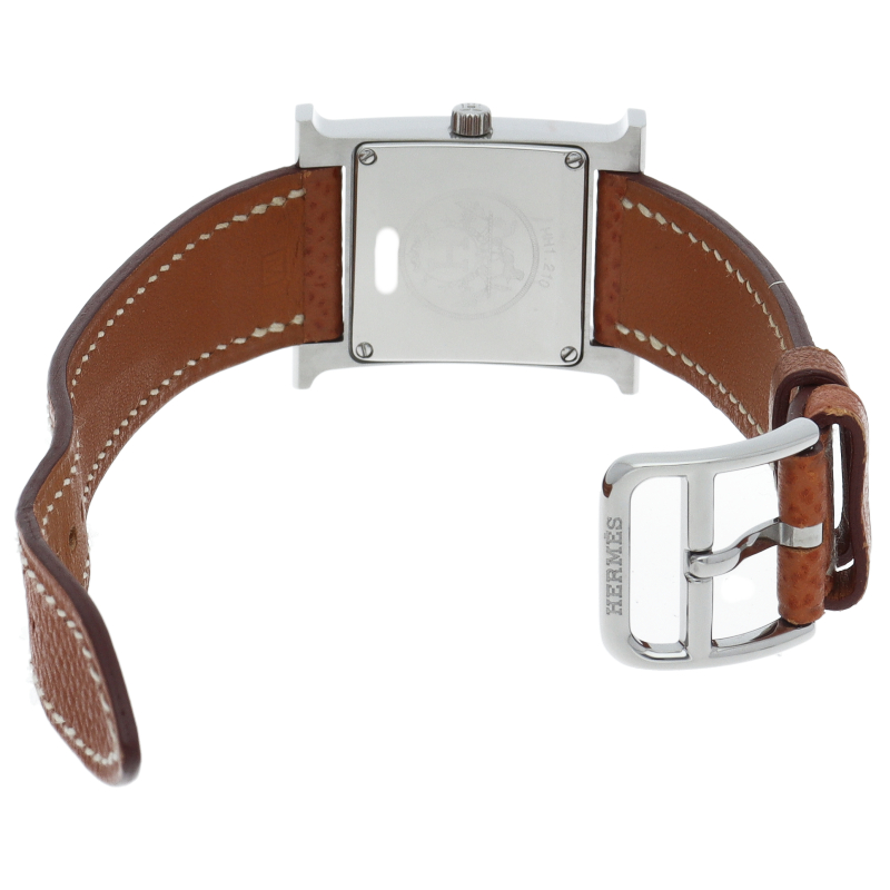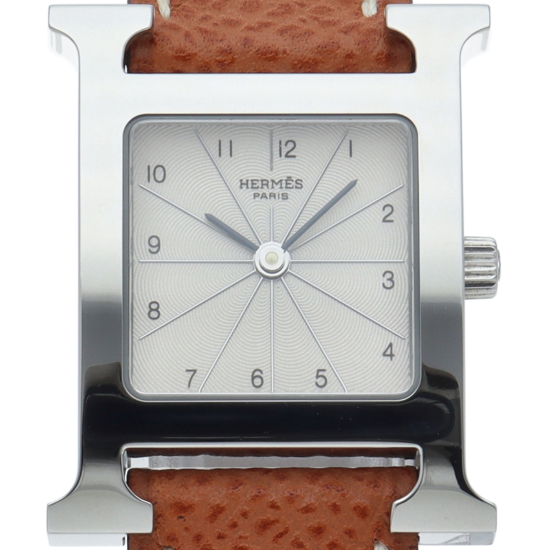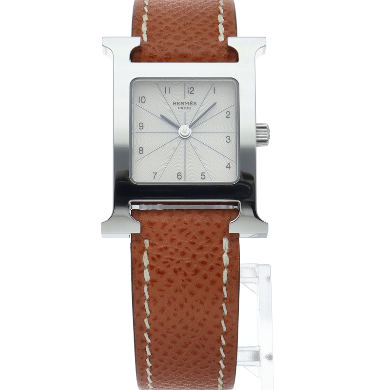 エルメスの人気モデル「Hウォッチ」。エルメスの頭文字である「H」をモチーフに作られたシンプルでオーソドックスな1本。□M刻印。