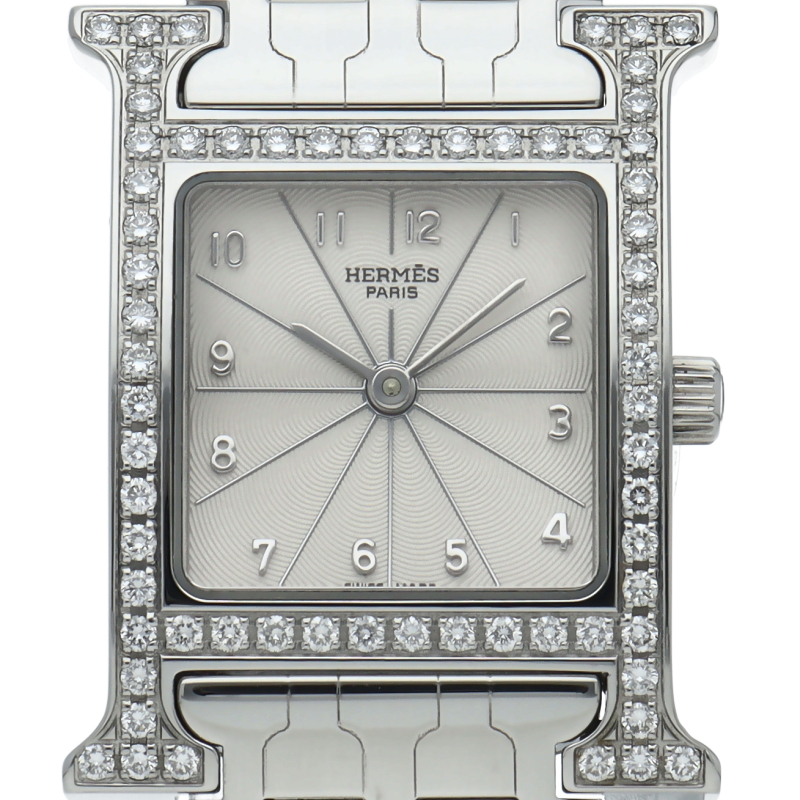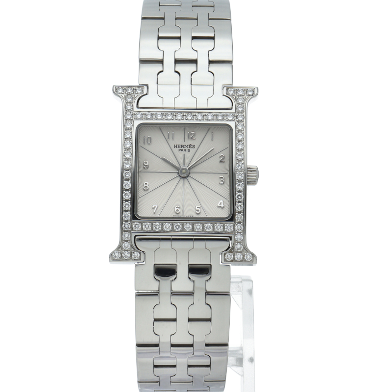 一目でエルメスとわかる「H」のアルファベットをケースにあしらったデザインです。ベゼルの「H」部分にダイヤモンドを使い、高級感漂う一品となっています。