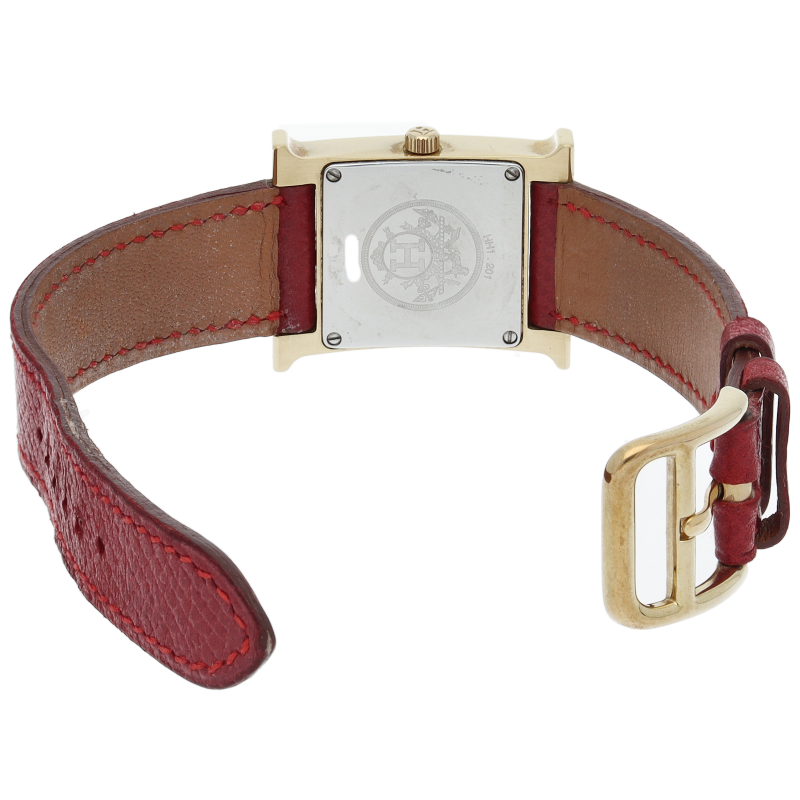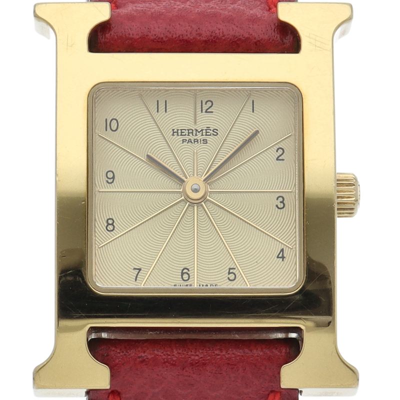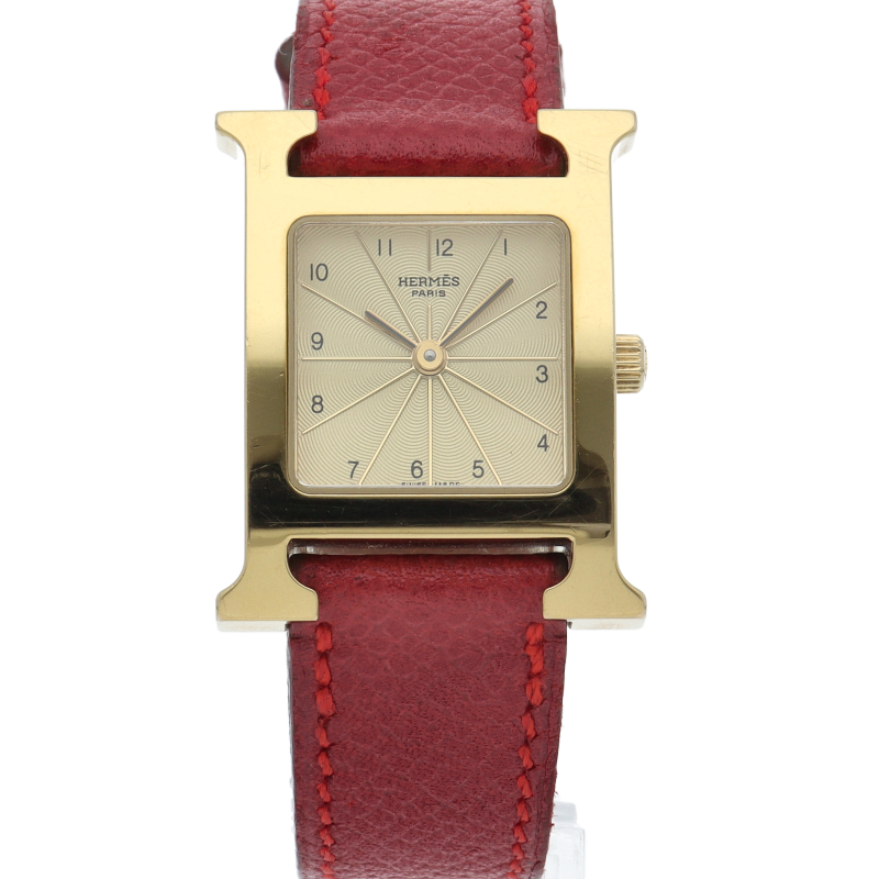 エルメスの人気モデル「Hウォッチ」。エルメスの頭文字である「H」をモチーフに作られたシンプルでオーソドックスな1本。□B刻印。
