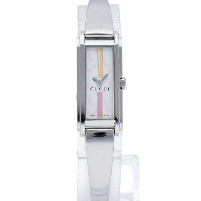 すっきりとしたフェイスにGUCCIの文字がさりげなく刻まれ、ブレスレット感覚で着用出来る時計です。109(YA109503)