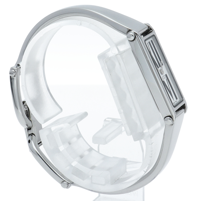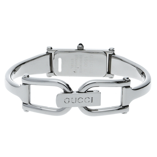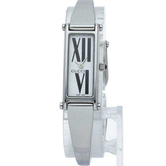 すっきりとしたフェイスにGUCCIの文字がさりげなく刻まれ、ブレスレット感覚で着用出来る時計です。