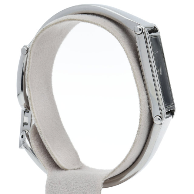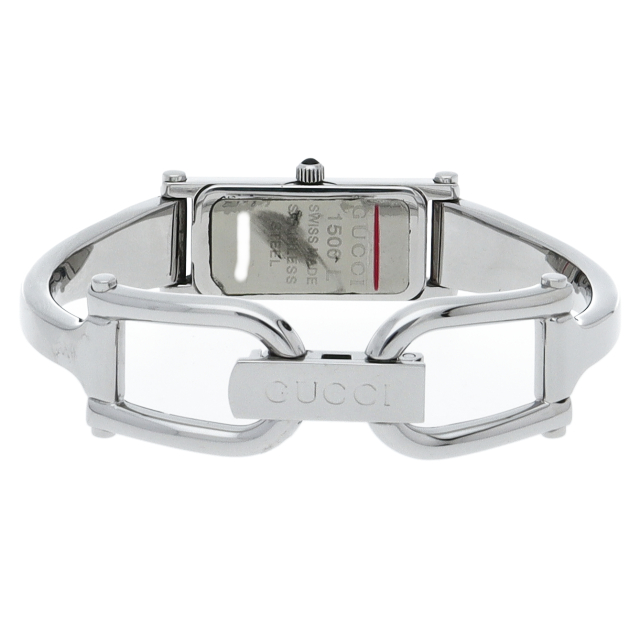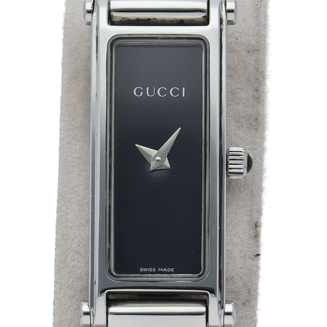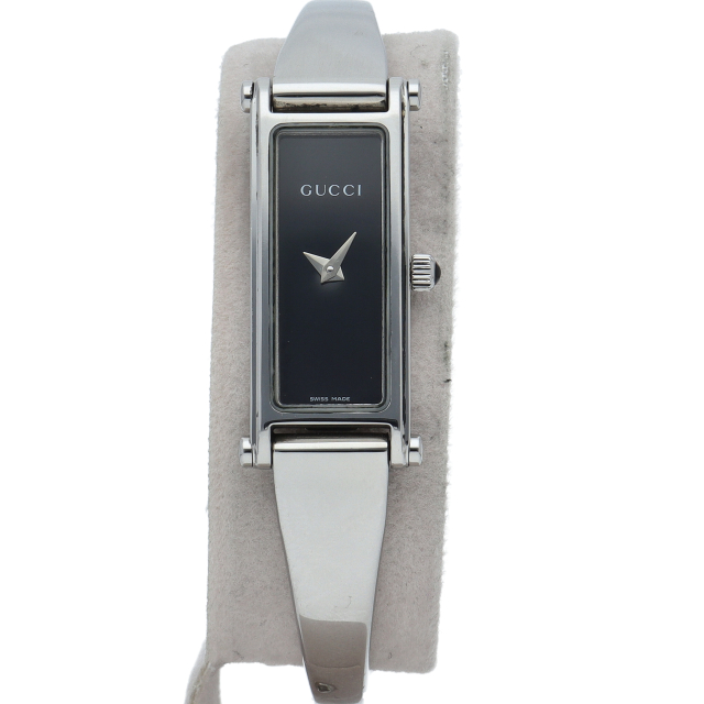 すっきりとしたフェイスにGUCCIの文字がさりげなく刻まれ、ブレスレット感覚で着用出来る時計です。YA015517(1500L)。