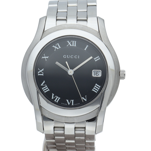 グッチ定番のメンズクォーツ。ステンレスベルトにシャープなフォルムでどんな服装にでも合う洗練された上品なデザインです。5500M(YA055302)