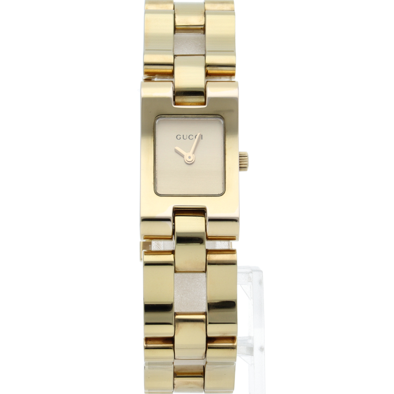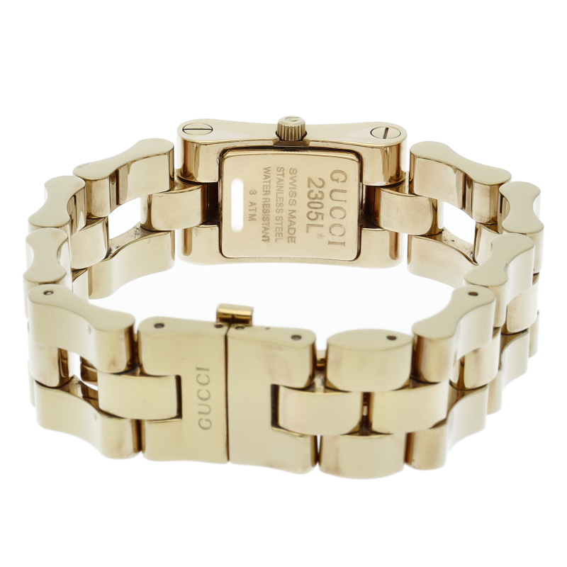 バンブーをイメージしているブレスがグッチらしさをアピールするレディース腕時計。シンプルながら高級感があります。