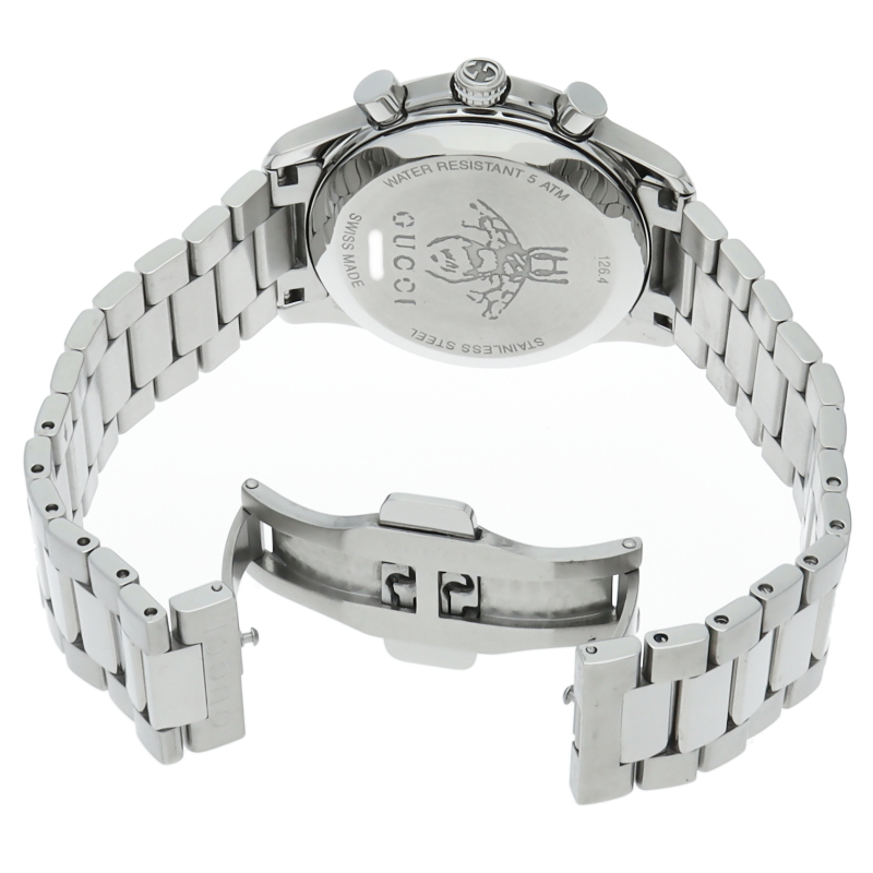 幅広い年齢層に人気の高い「グッチ」のメンズウォッチ。お手頃な価格帯ながら、シンプルで使いやすいデザインがオススメの1本。126.4/YA126472