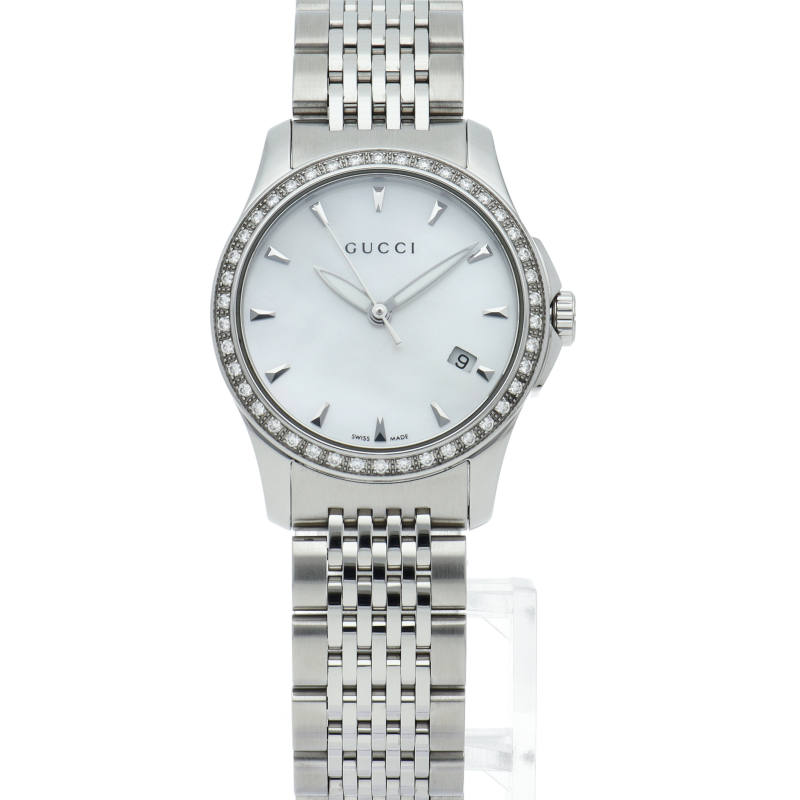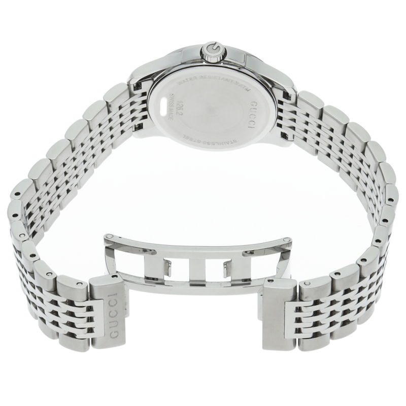 幅広い年齢層に人気の高い「グッチ」のレディースウォッチ。お手頃な価格帯ながら、シンプルで使いやすいデザインがオススメの1本。126.2。