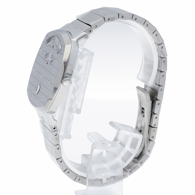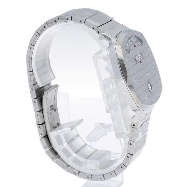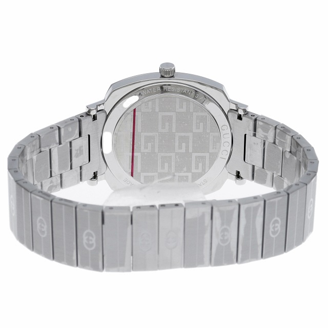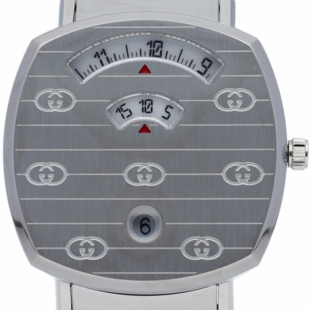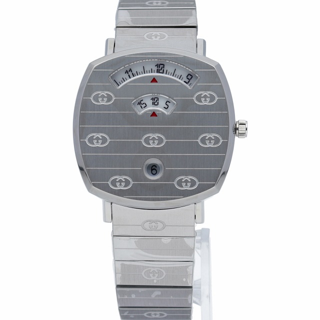 1970年代後半のスケートボーダーにインスピレーションを得たクッション形フラットな厚さ6ミリの35ミリケースに時間・分・日付を表示する3つの窓を設けたグリップクオーツは、通常の時計とは一線を画すデザインも斬新なグッチ人気のジェンダーレスモデルです。