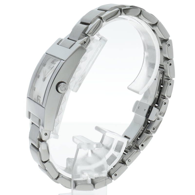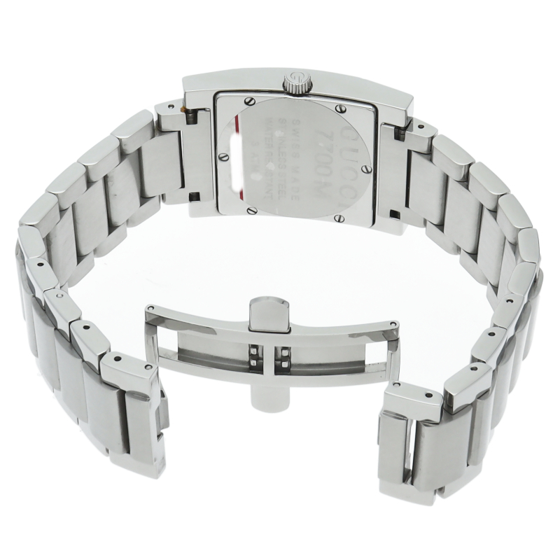 洗練されたデザインが光るグッチのスクエアフェイスウォッチ。スタイリッシュなスクエア型ケースと、シンプルでありながらも高級感漂う文字盤が特徴。美しいステンレススチールのブレスレットは、どんなコーディネートにもエレガントなアクセントを加えます。