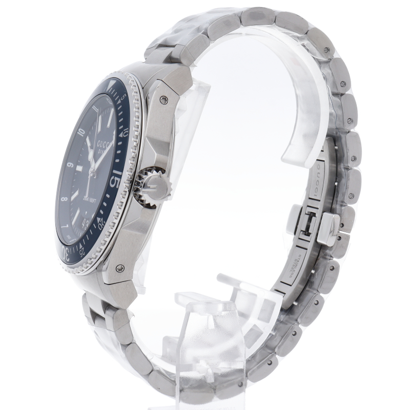 スポーティで洗練されたデザインが男性の腕をスタイリッシュに彩る、グッチ人気のタイムピース。手元にグッチのクラス感を香らせてスーツスタイルにも格好よくマッチします。136.2(YA136203)