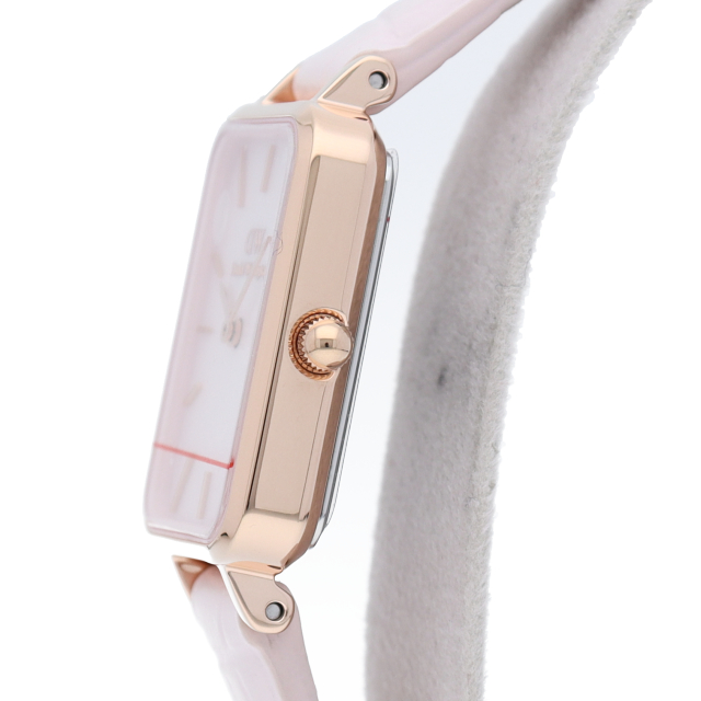 ステンレススチールに上品なローズゴールドメッキ仕上げを施したこのモデルには、クロコダイルパターンを型押ししたヌードピンクのレザーストラップが付属します。マザーオブパールの文字盤が付いた、小ぶりなスクエアウォッチ。ヌードピンクのレザーストラップを組み合わせたこの腕時計は、どんな装いもレベルアップします。