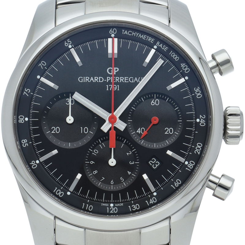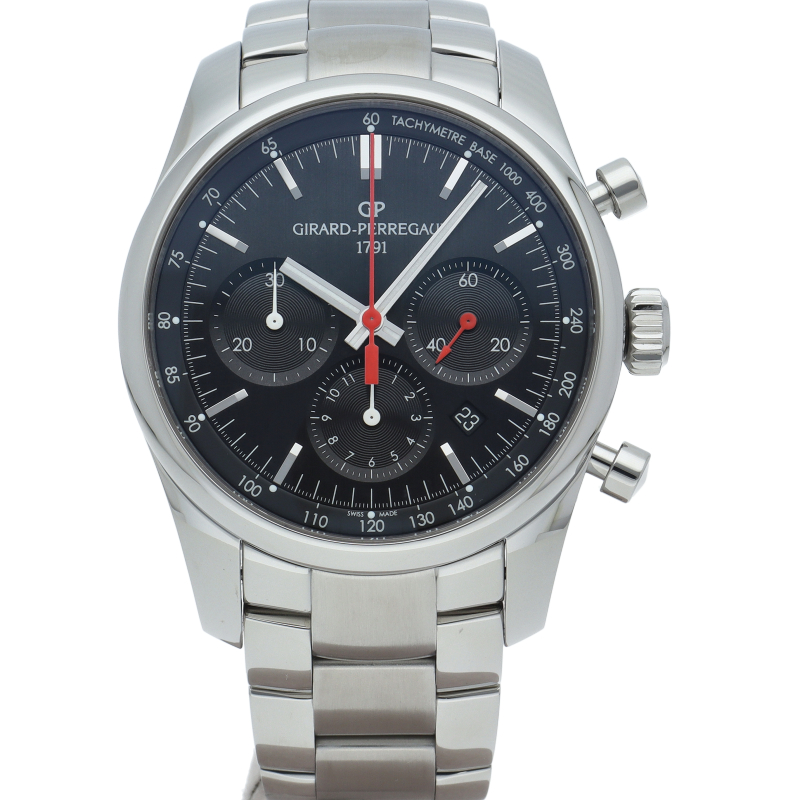 自社一貫生産を自らの使命と考え1791年の創立以来、自社でムーブメントの設計や製造を行う、数少ない時計メーカーであるジラール・ペルゴ。コンペティチオーネ ストラダーレは1960年代に名声を得たジラール・ぺルゴのクロノグラフを現代風の42mmケースでデザインし直して発表されたモデルです。