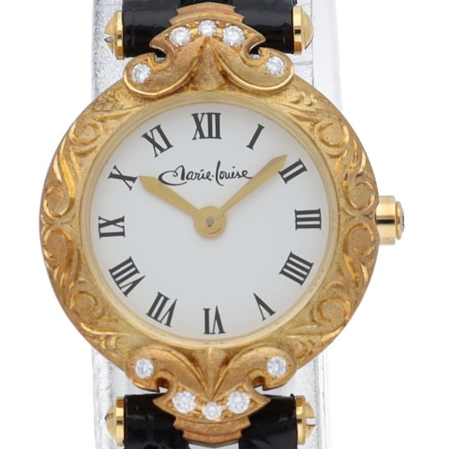 エレガントな雰囲気漂うドレスウォッチ。ケースにイエローゴールドを贅沢に使用し、ベゼルにはダイヤをあしらった豪華な一本です。