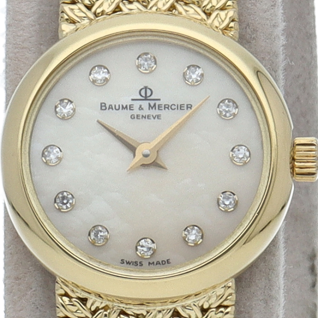 1830年から続く、スイスのウォッチメゾン、ボーム&メルシェ。インデックスのダイヤが豪華なレディース時計です。