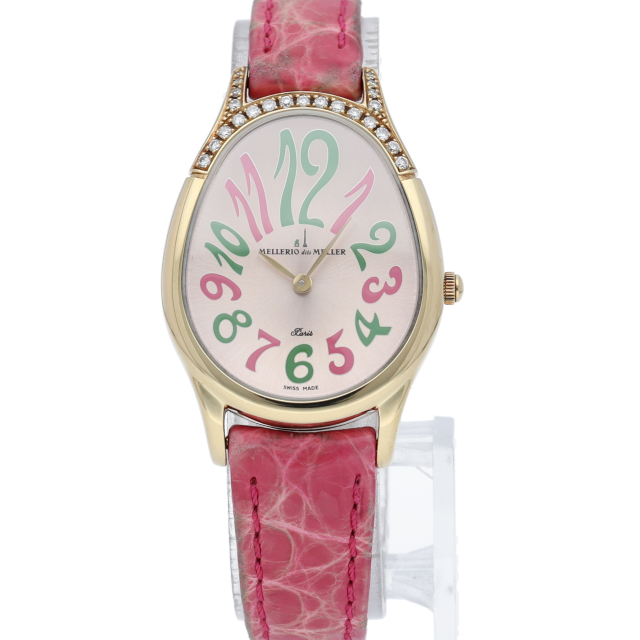 グラン・サンク(パリ五大宝飾店)のひとつ、メレリオディメレー。卵型のK18YGのケースと湾曲した文字盤が独特な魅力を演出。