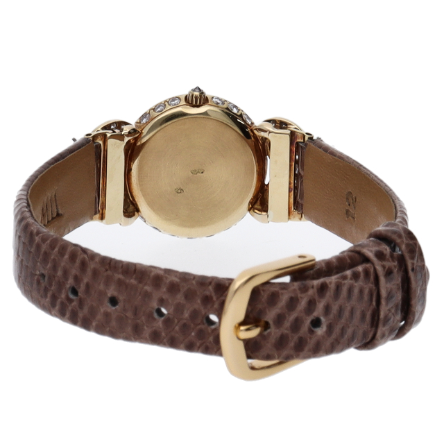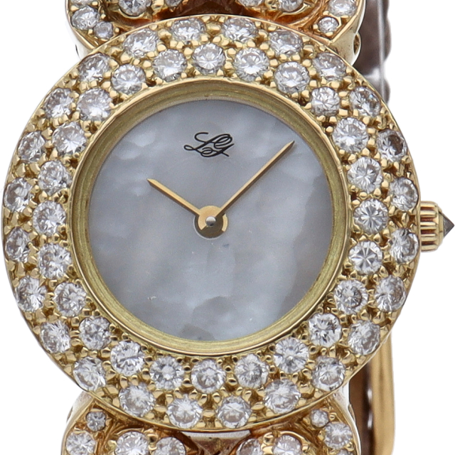 フランスの最高級ジュエリー「THE QUEEN」のレディース時計です。ケースにイエローゴールドを使用し、ベゼル3.16カラットのダイヤをあしらった豪華な一本です。