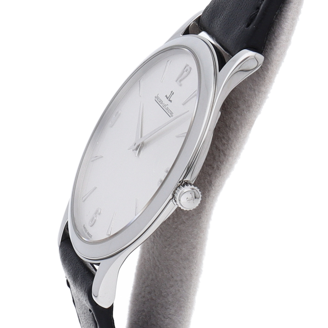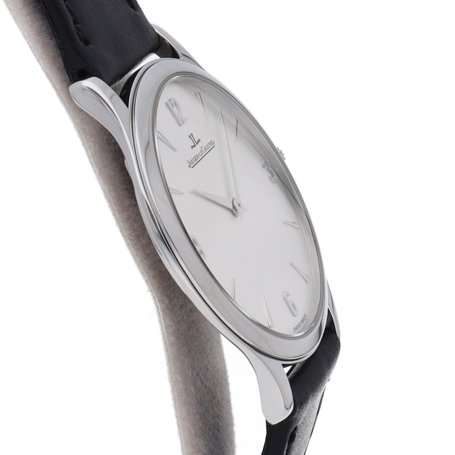 搭載している手巻きムーブメント“Cal.849”は、厚みが1.85mmというジャガー・ルクルトの技術力を感じることができる名品です。無駄の無い輪郭、そして端正な表情、滑らかな素材感などシンプルな洗練さを追求したこだわりが表現されいてる超薄型ウォッチです。145.8.79(Q1458520)