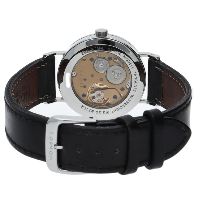 ドイツデザインらしい、ソリッド感に溢れ、シンプルの極みとも言える無駄のないデザインが特徴のノモスウォッチ。そのノモスを代表する人気シリーズ「タンジェント」です。