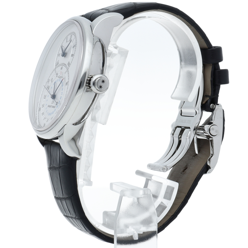 グランセコンドの持つ空間の美を損なうことなくデイト機能を付加。 長い秒針が優雅に文字盤をスウィープ。一切の無駄を省き、独自のデザインにもこだわり抜いたシックな一本です。