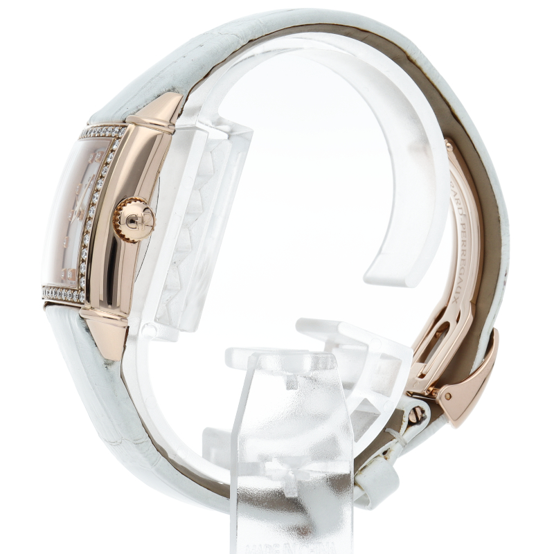 時計製造工芸の復活期である1945年、ジラール・ペルゴはアールデコからインスパイアされた丸みをおびたレクタンギュラー(長方形)ケースのモデルを創作しました。「ヴィンテージ1945 シリーズ」は、1995年にその復刻版としてデザインされたシリーズです。