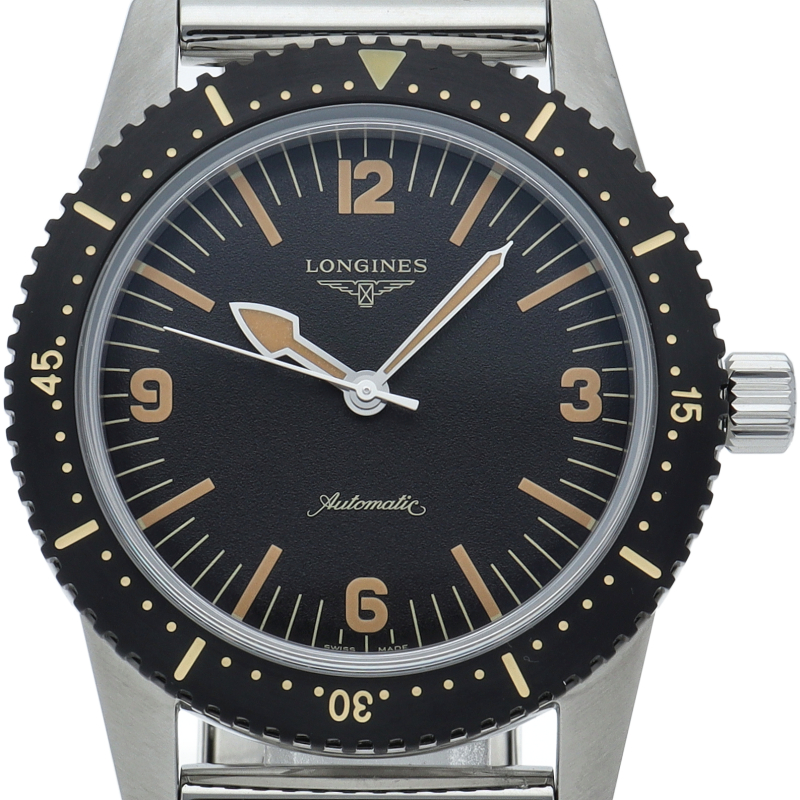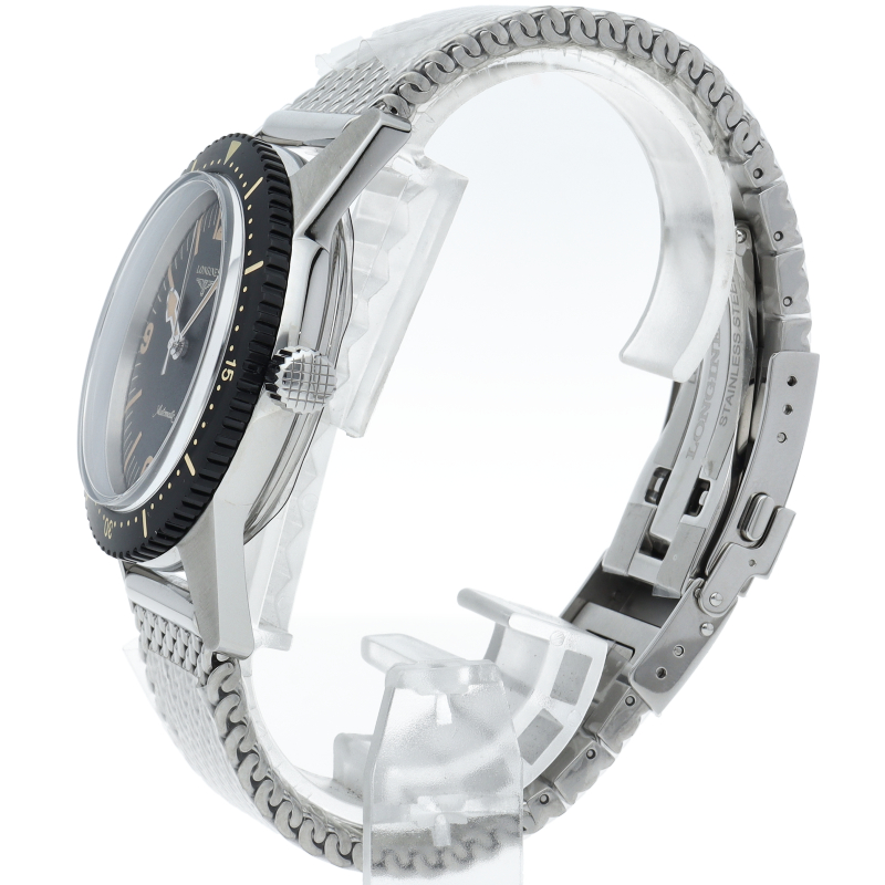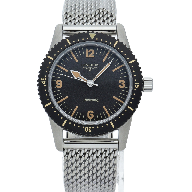 スキンダイバーは1956年に初めてロンジンが製作したダイバーズモデル「ノーチラス スキンダイバー」の復刻モデルです。パワーリザーブ64時間を誇るCal.888を搭載し使い勝手にも優れ、ミラネーゼブレスの着け心地もなめらかに男性の腕をお洒落に彩るモデルです。