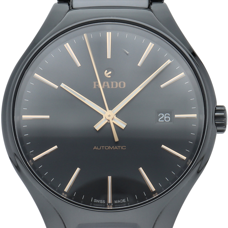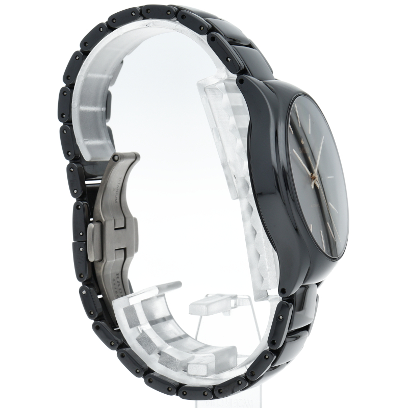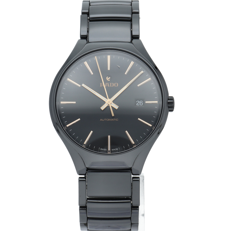 近未来的なデザインが目を惹くラドー。そのなかでも緻密に設計されたブレスから流れるような美しい曲線を描くフォルムを成すのがトゥルーコレクションです。素材にはマスターオブマテリアルズを標榜するラドーが得意とするハイテクセラミックを採用。軽量かつ耐傷性に優れ、装着感にも配慮されています。