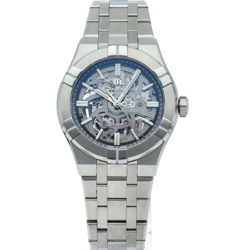 新しいモーリス・ラクロアのアイコン スケルトンは、都会の建築物からインスピレーションを得ました。この時計の39mmのステンレススティール製ケースの控えめなサイズが幅広い人々を魅了します。