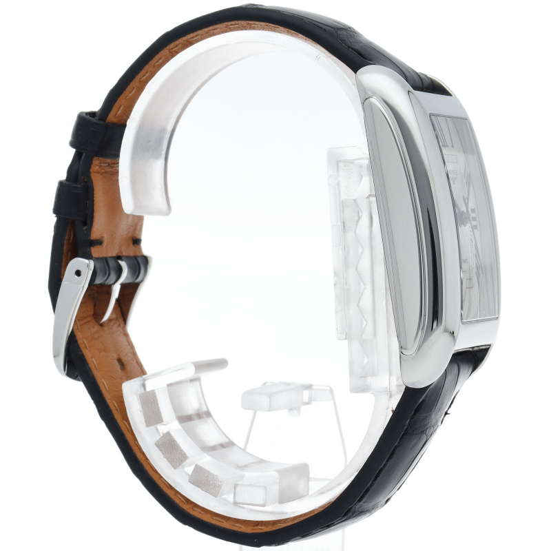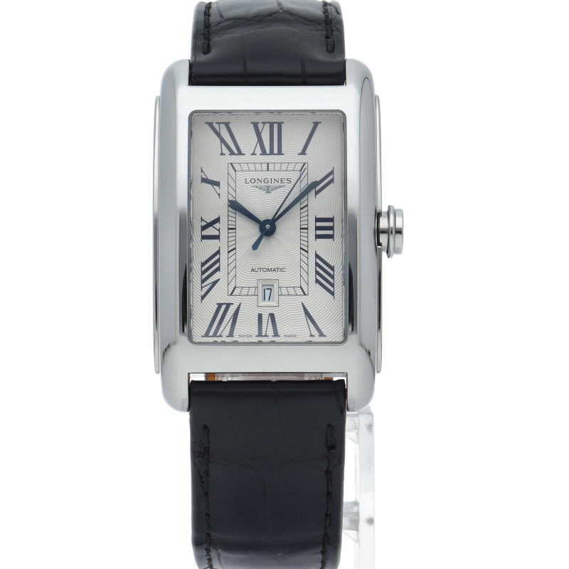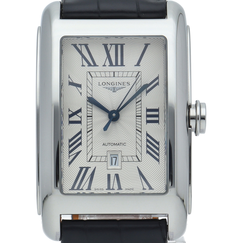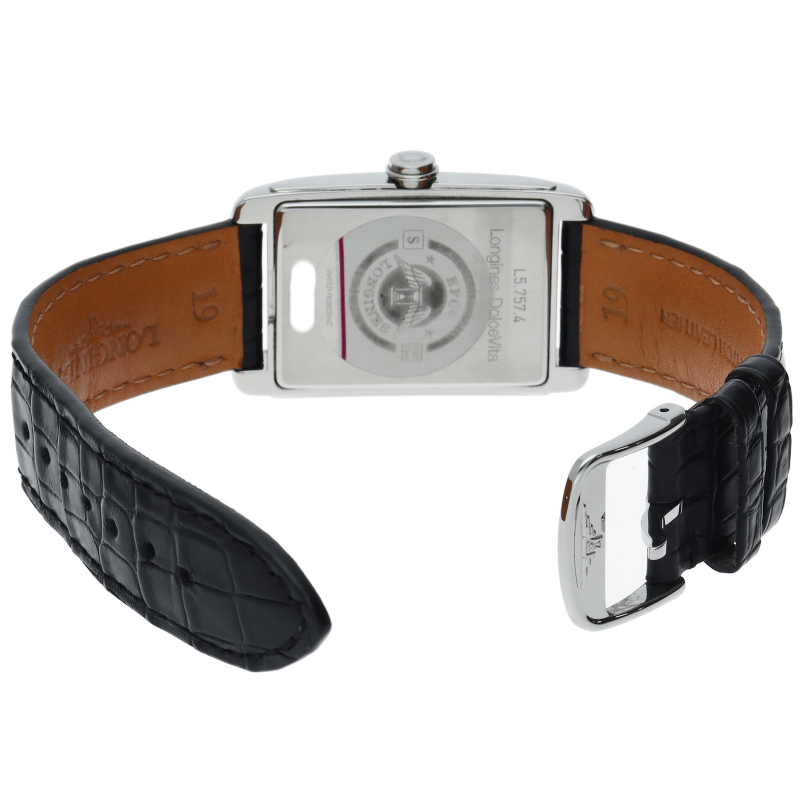 イタリア語で「甘い生活」という意味の「ドルチェビータ」。手首に沿うようにカーブがつけられたレクタンギュラー型のケースが装着感に優れたモデルで、柔らかなラインをまとった流行に流されない独特なデザインです。L5.77.4/L5.757.4.73.0