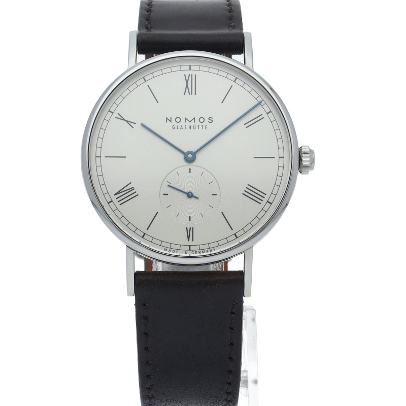 ドイツの時計製造の街として有名なグラスヒュッテに1990年に創業したノモス。ドイツ発祥のバウハウスの流れを組むデザインが特徴的で、極めてシンプルでありながら美しいモデルが多数展開されるブランドです。直線を多用するモデルが多いノモスですが、曲線を多用するコンテンポラリーなデザインに仕上がっているラドウィッグ。LD1E2W2/251