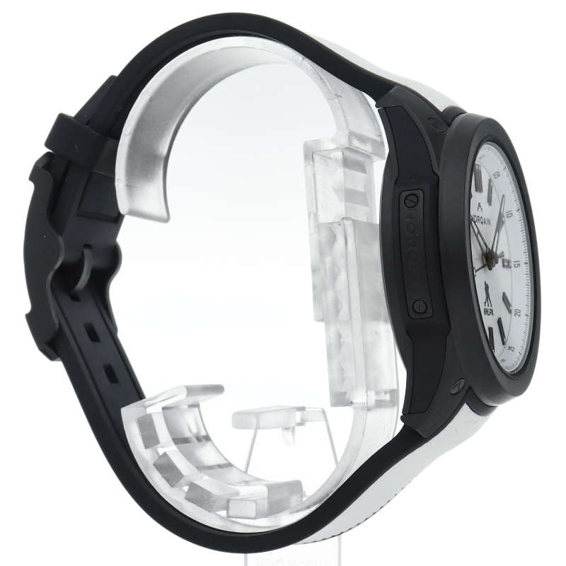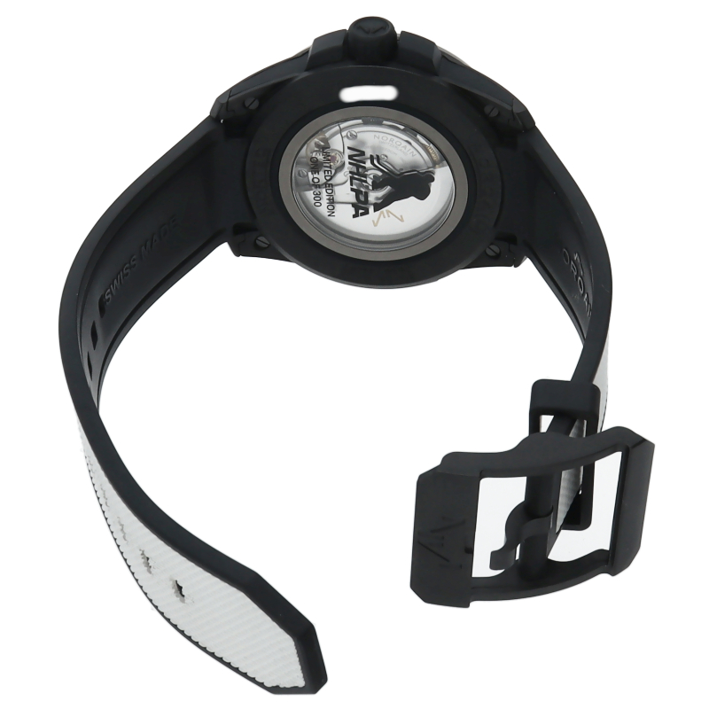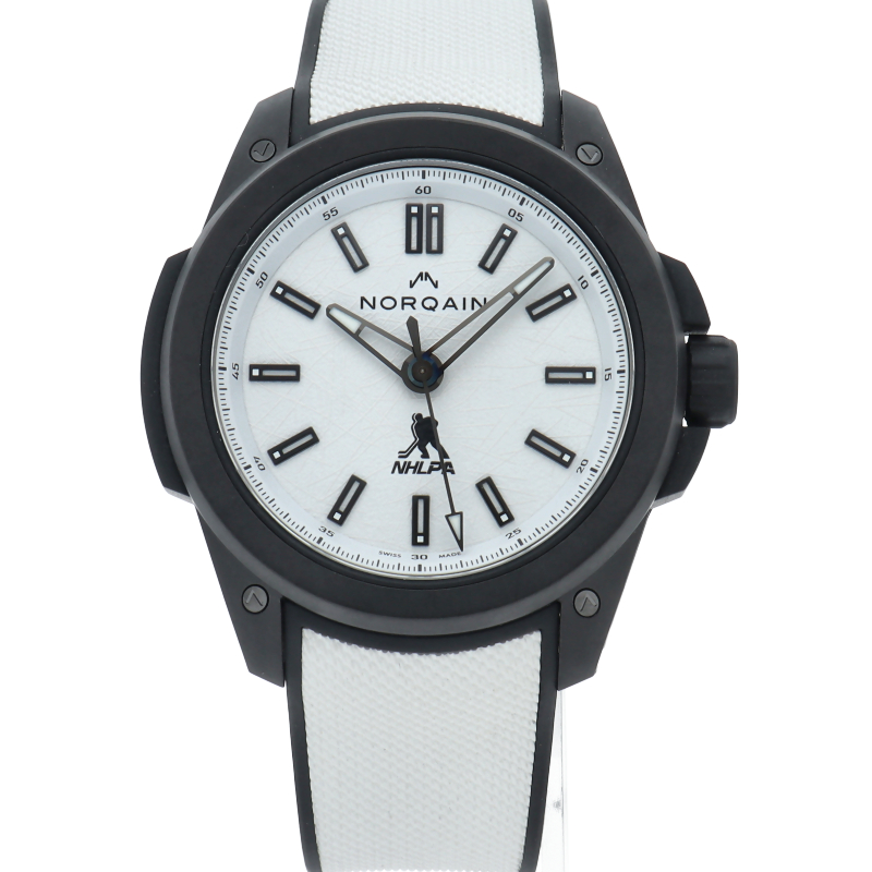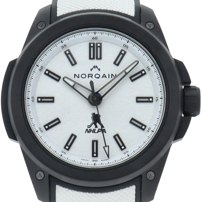 Wild ONE NHLPAは、独自開発のカーボンファイバー素材「NORTEQ-ノルテック」を使用した究極のハイパフォーマンス・スポーツウォッチです。スチールの6倍、チタンの3.5倍の軽さと200mの防水性を持ち、陸上や水中でのほぼすべてのアクティビティに対応する堅牢性を備えています。Wild ONEは、著名なジャン・クロード・ビバー氏、NORQAINチーム、そしてスイス最高のサプライヤーとのコラボレーションによってデザインされました。