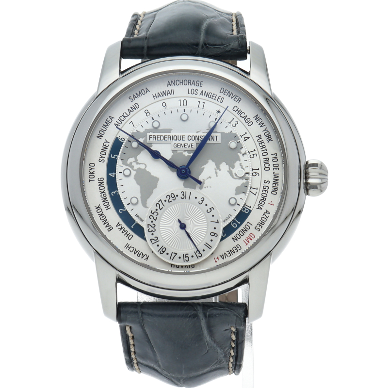グローバル化が進み、海外とのコミュニケーションに実用的に活躍するワールドタイマー機構搭載時計。自社開発キャリバー“FC-718”を搭載。1つのリューズでワールドタイムの時刻合わせなどを調整する事ができ、操作性の高さが魅力です。